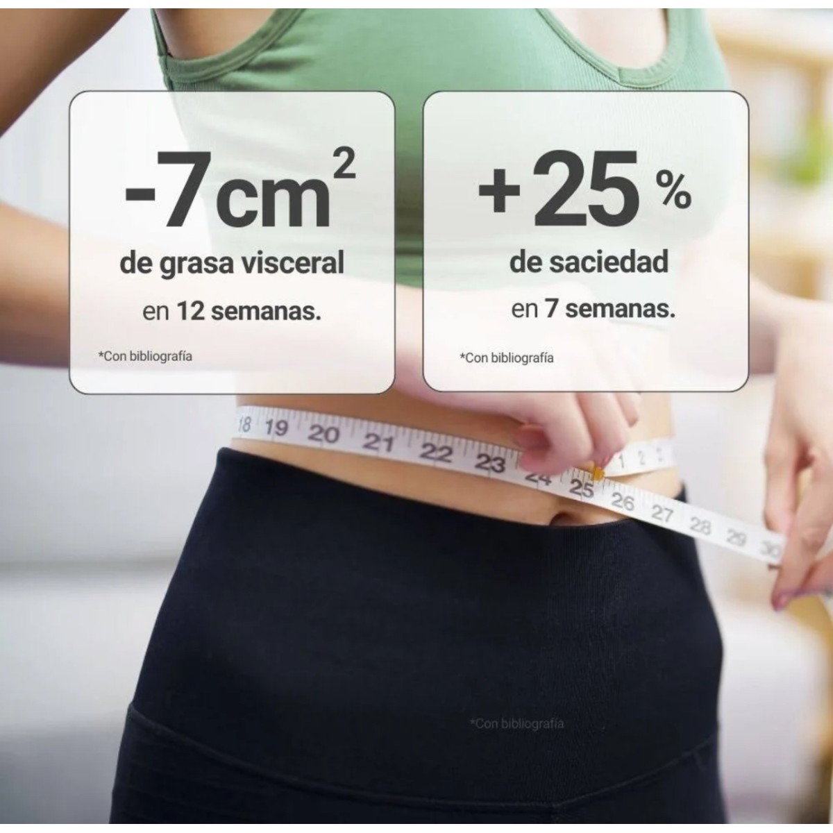 • Postbiótico: reduce la grasa visceral y mejora la composición de la microbiota.
