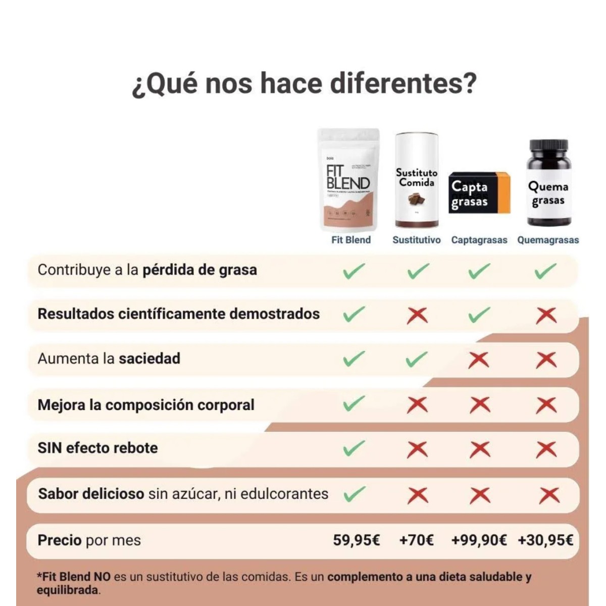 Fit Blend es perfecto para quienes buscan reducir la grasa corporal, aumentar la saciedad y mejorar su metabolismo de manera efectiva. Este suplemento no solo ayuda a reducir el hambre, sino que también promueve una composición corporal más saludable, sin los efectos rebote de las dietas milagro.