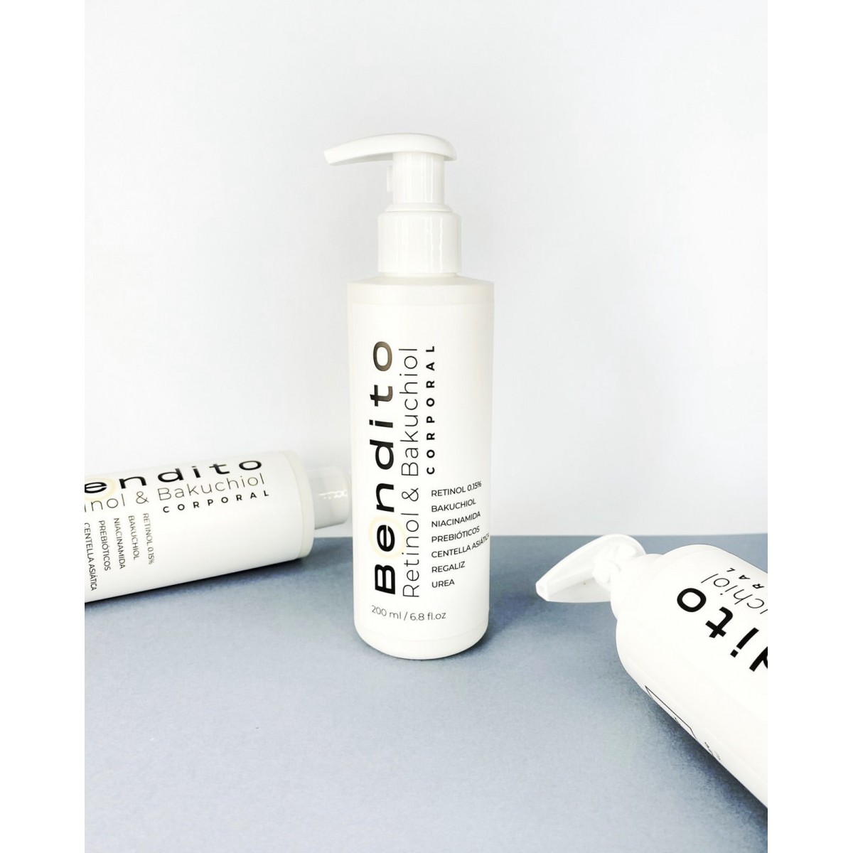 Bendito Retinol & Bakuchiol es una crema corporal antiedad con una textura ligera, nada