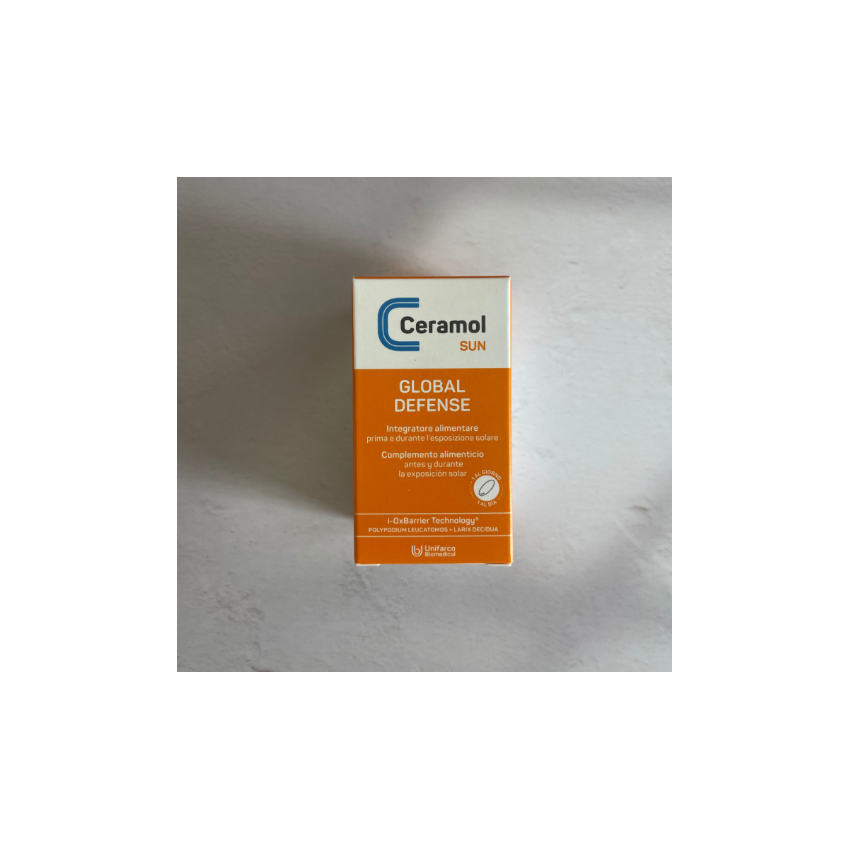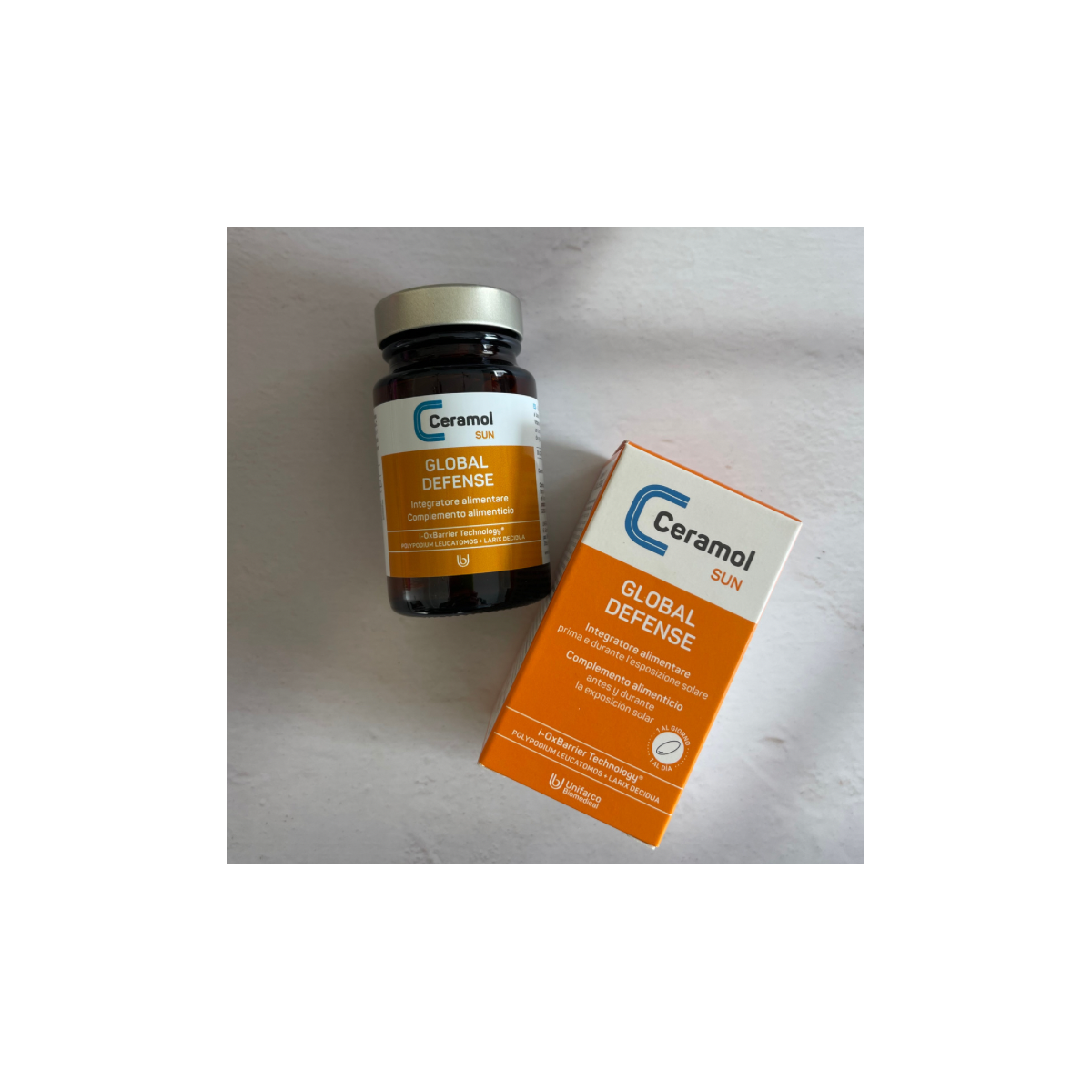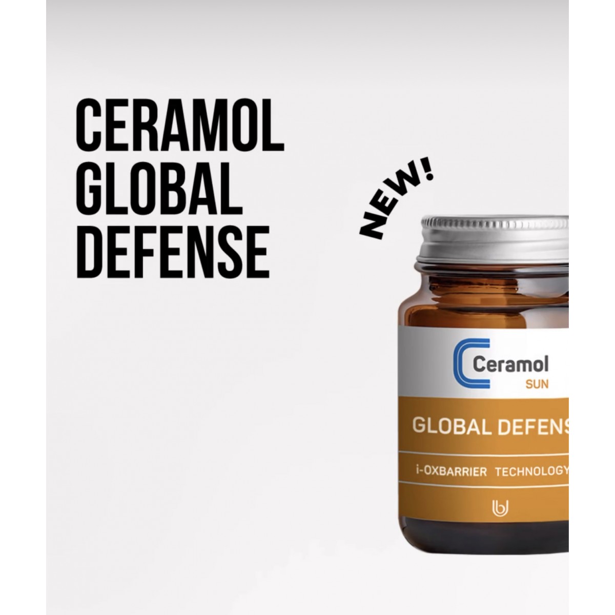 Global Defense de CERAMOL Sun: Con i-OxBarrier Technology, complejo Polupodium leucatomos y Alerce exclusivo y activos antioxidantes, como la Vitamina C, que refuerza las defensas naturales y protege frente al estrés celular oxidativo.