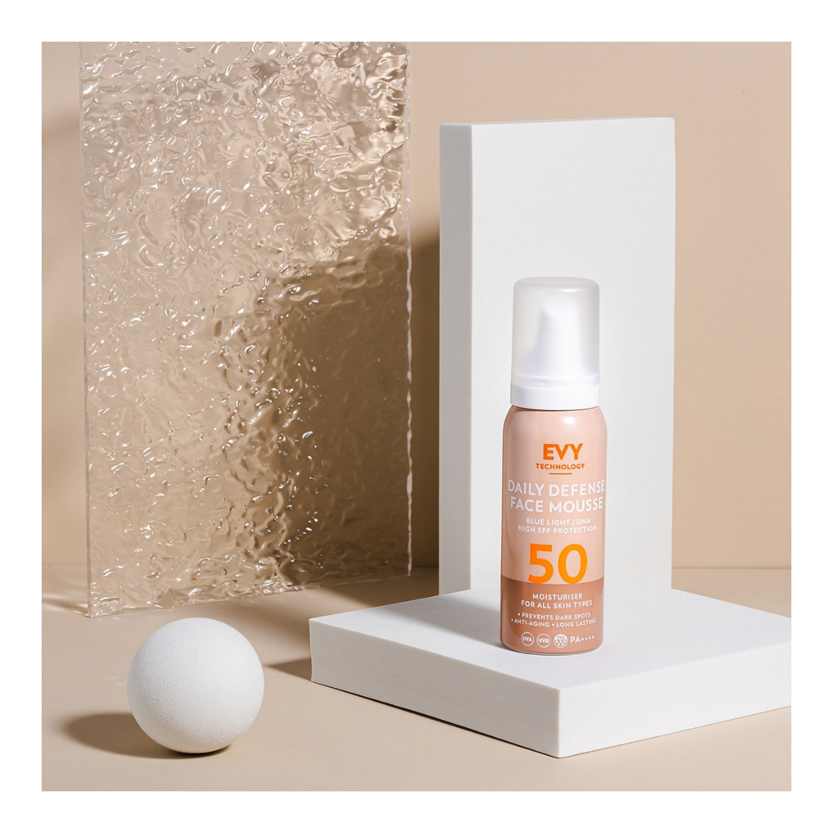 Daily Defense Face Mousse SPF 50 es un producto perfecto para aquellas personas que buscan un protector solar anti-envejecimiento resistente al agua (hasta 6 horas), pero con una textura ligera y acabado imperceptible. Es perfecto para pieles extremadamente sensibles, alérgicas, con manchas de hiper-pigmentación (melasma) o manchas blancas (vitíligo).