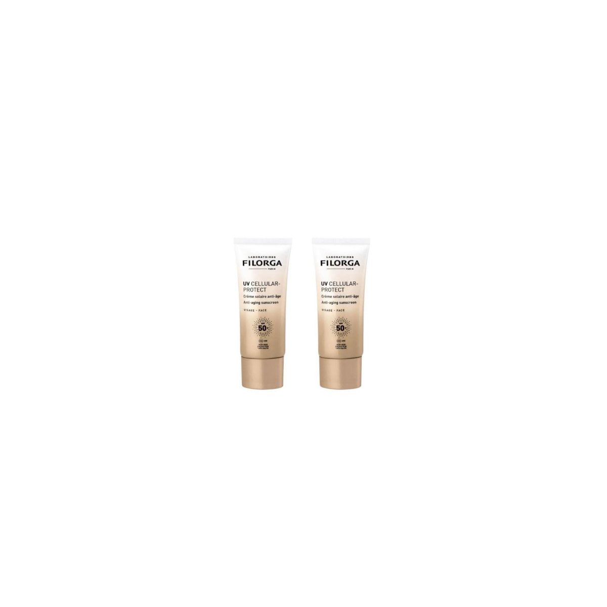 El Filorga UV Pack 2x Cellular-Protect Crema 40ml es un conjunto de dos unidades de la crema solar facial anti-edad UV Cellular-Protect SPF50+ de Filorga, diseñada para combatir cuatro signos del fotoenvejecimiento: