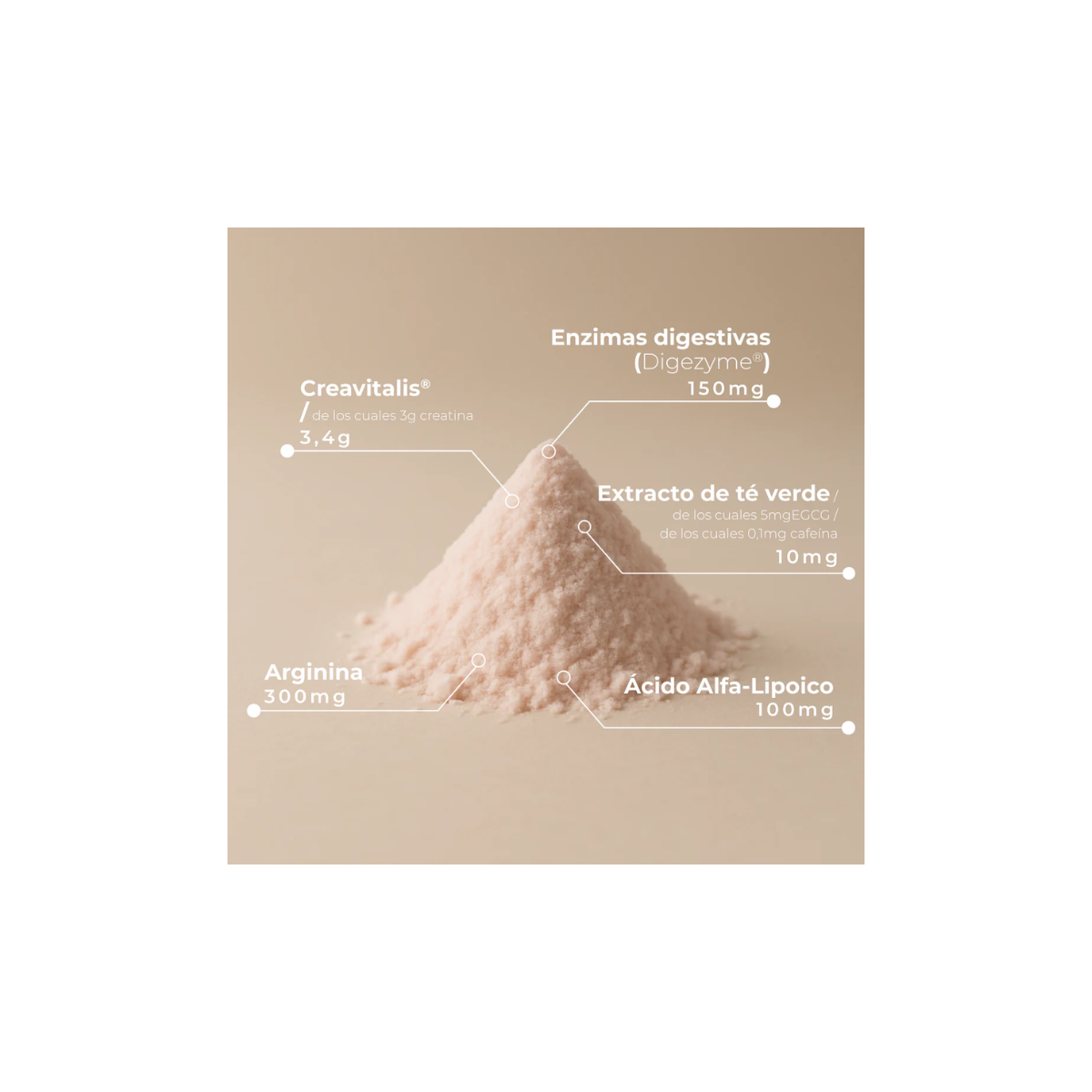 La creatina más completa.3 g de creatina netos de máxima pureza (Creavitalis®) con L-arginina, ácido alfa-lipoico, EGCG y enzimas digestivas para maximizar sus beneficios. Sin azúcares añadidos ni edulcorantes artificiales.