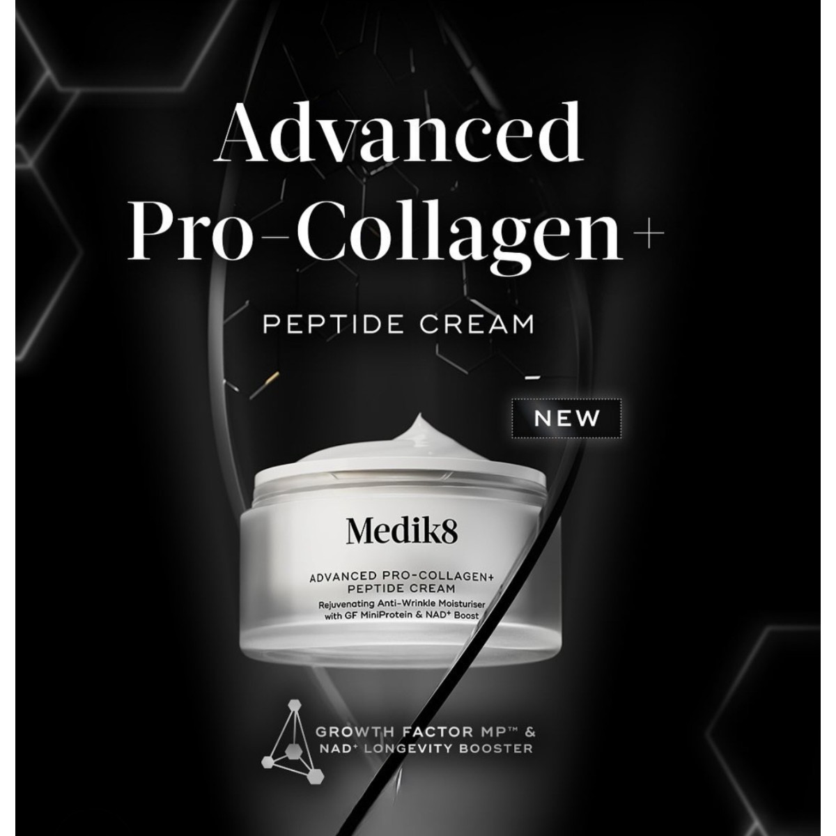 Medik8 Advanced Pro-Collagen+ Peptide Cream ha sido especialmente desarrollada para combatir los signos del envejecimiento en múltiples frentes, ofreciendo resultados visibles en tan solo una semana. Esta crema de última generación estimula la producción natural de colágeno, mejora la textura y la elasticidad de la piel y deja un acabado sedoso sin sensación grasa. Con su fórmula clínicamente probada, Medik8 Advanced Pro-Collagen+ Peptide Cream ayuda a reducir las líneas finas y arrugas profundas, devolviendo al rostro una apariencia más firme, joven y luminosa. Ideal para todo tipo de piel, incluso las más sensibles.