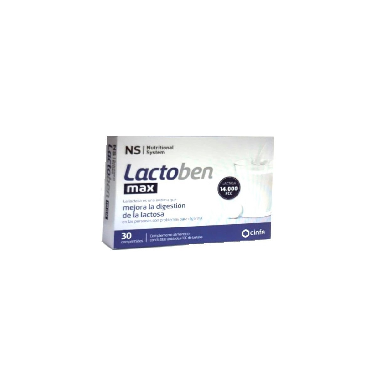 Ns Lactoben Max son comprimidos que contienen 14000 FCC de Lactasa, útiles para personas con altos niveles de intolerancia a la lactosa.