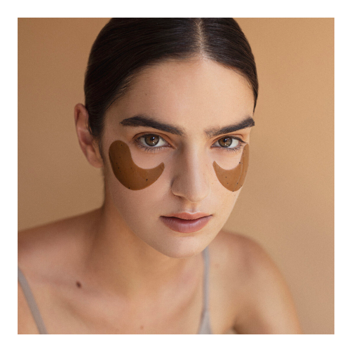 Estos parches son muy especiales. Hemos probado muchos a lo largo de los años, y sabíamos exactamente lo que queríamos; unos parches que hidraten y refresquen la zona del contorno, que iluminen la ojera y que descongestionen esas bolsas de recién levantada que tanto detestamos. Y si podían aportar propiedades antiedad para prevenir y ayudar a tratar arruguitas y líneas de expresión, mejor que mejor. Evidentemente, lo hemos conseguido, todo gracias a la fórmula desarrollada por nuestras expertas. Contiene un 5% de extracto de té verde del sur de China, repleto de antioxidantes que ayudan a proteger la piel de radicales libres como el estrés, la contaminación o los rayos UV, glicerina para humectar la zona y mantener sellada esa hidratación, un 2% de niacinamida, un ingrediente calmante y altamente iluminador y un 1% de cafeína, uno de los ingredientes más revitalizantes y energizantes de la naturaleza. La cafeína puede ayudar a mejorar la microcirculación de la sangre en la zona, rebajando la inflamación e hinchazón, descongestionando así las bolsas. Sí, estos parches son como un café de buena mañana para tus ojos. De hecho, las motitas marrones que verás, son puntitos de café. ¿Creías que era todo? También contienen extracto de jengibre para suavizar y calmar, vitamina E, ácido hialurónico y alantoína.
