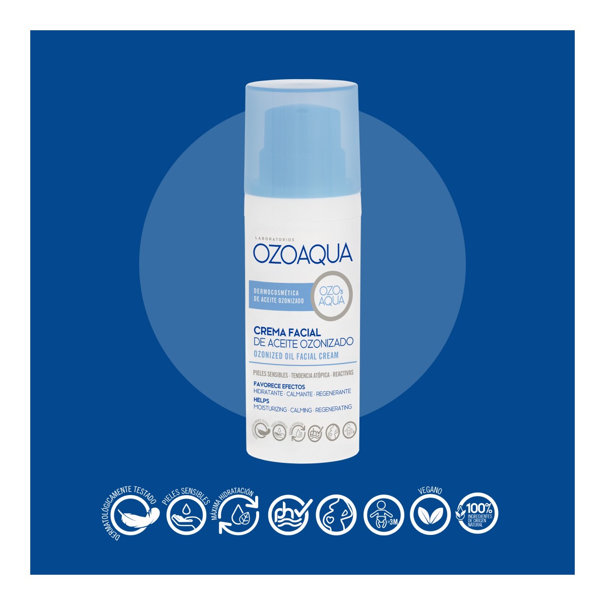 Los aceites ozonizados conservan numerosas propiedades beneficiosas del ozono: hidratante, antioxidante, germicida, regenerante, cicatrizante, calmante y reparador, entre otras. Su acción ayuda a recuperar el estado fisiológico natural de la piel.