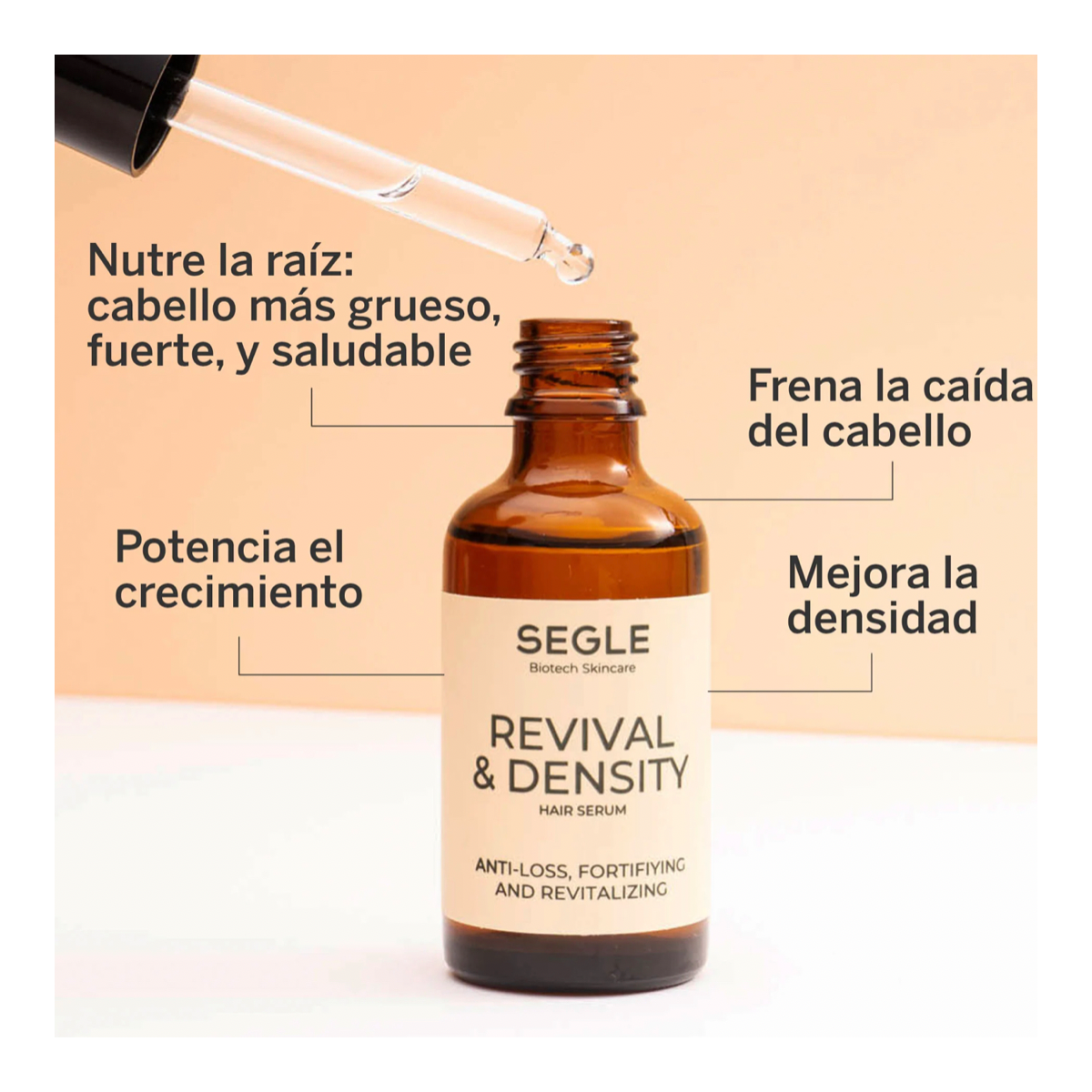 Sérum capilar para un cabello más grueso, denso, fuerte y saludable. Formulado con cocktail de Péptidos de