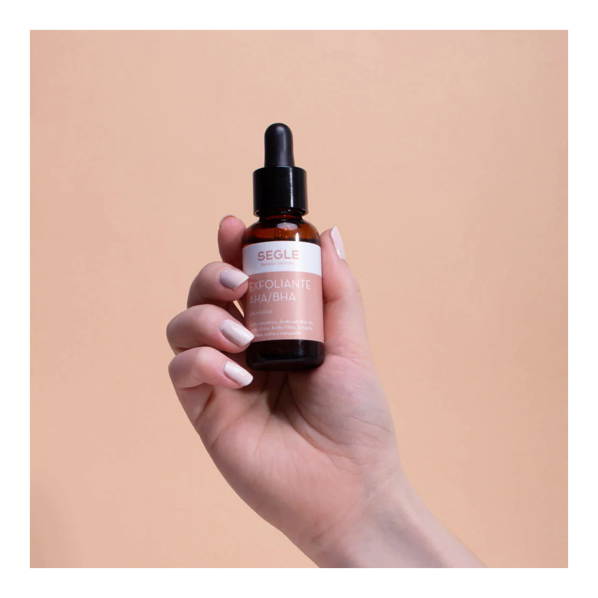 Aplicar 3-4 gotas del Exfoliante AHA/BHA en el rostro, extender con los dedos y masajear suavemente. Sin enjuague. Para uso una o dos veces al día, según tolerancia.