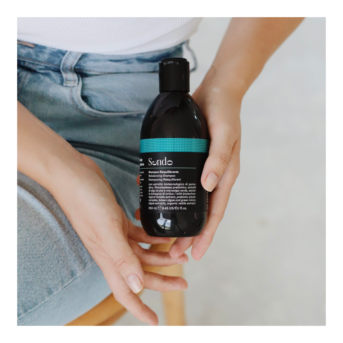Sendo Champú Equilibrante es un champú, que, aun siendo respetuoso con el cabello, consigue limpiar eficazmente la grasa y residuos del cuero cabelludo.