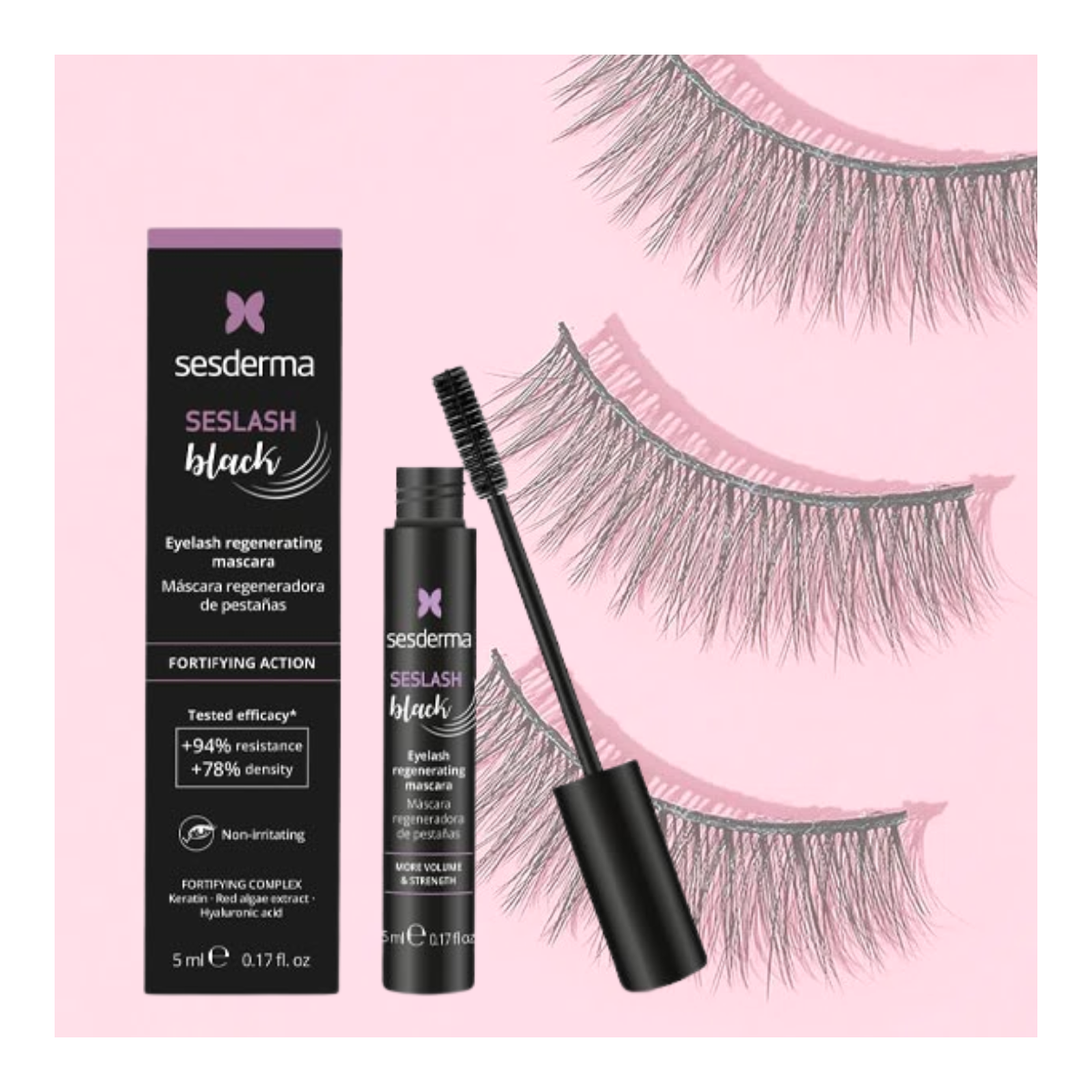 Para combatir la disminución de pestañas o para conseguir que estén más fuertes y sanas, Sesderma Seslash Black Máscara Regeneradora favorece su crecimiento y largura, al tiempo que aumenta la cantidad y retrasa su caída.