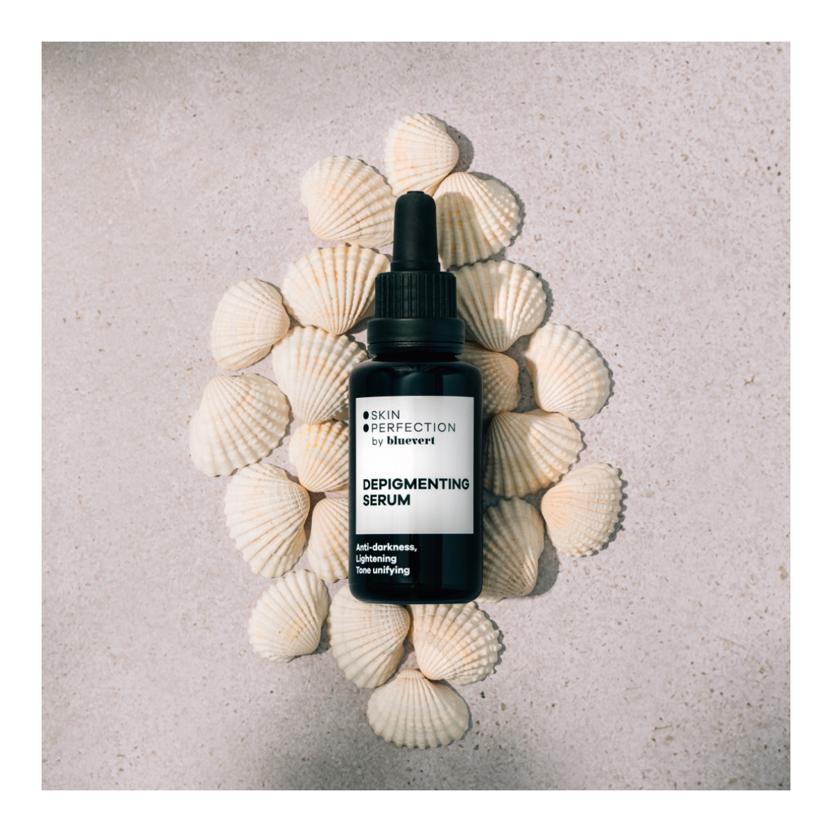DEPIGMENTING SERUM Activos Principales Concentrado antiedad multiacción: antiarrugas, hidratante, reafirmante, reparador,