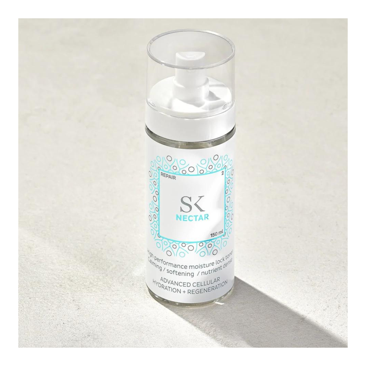 Otra peculiaridad de la fórmula de Nectar radica en el hecho de que contiene un sistema especial de autoconservación, evitando de esa manera el uso de conservantes clásicos y haciendo que el producto sea altamente tolerable incluso para las pieles más sensibles. Al igual que el resto de los productos de Skintegra, Nectar está formulado sin la adición de parabenos, perfumes, alcohol, colorantes sintéticos y otros irritantes, y viene en una botella compacta con dosificador.