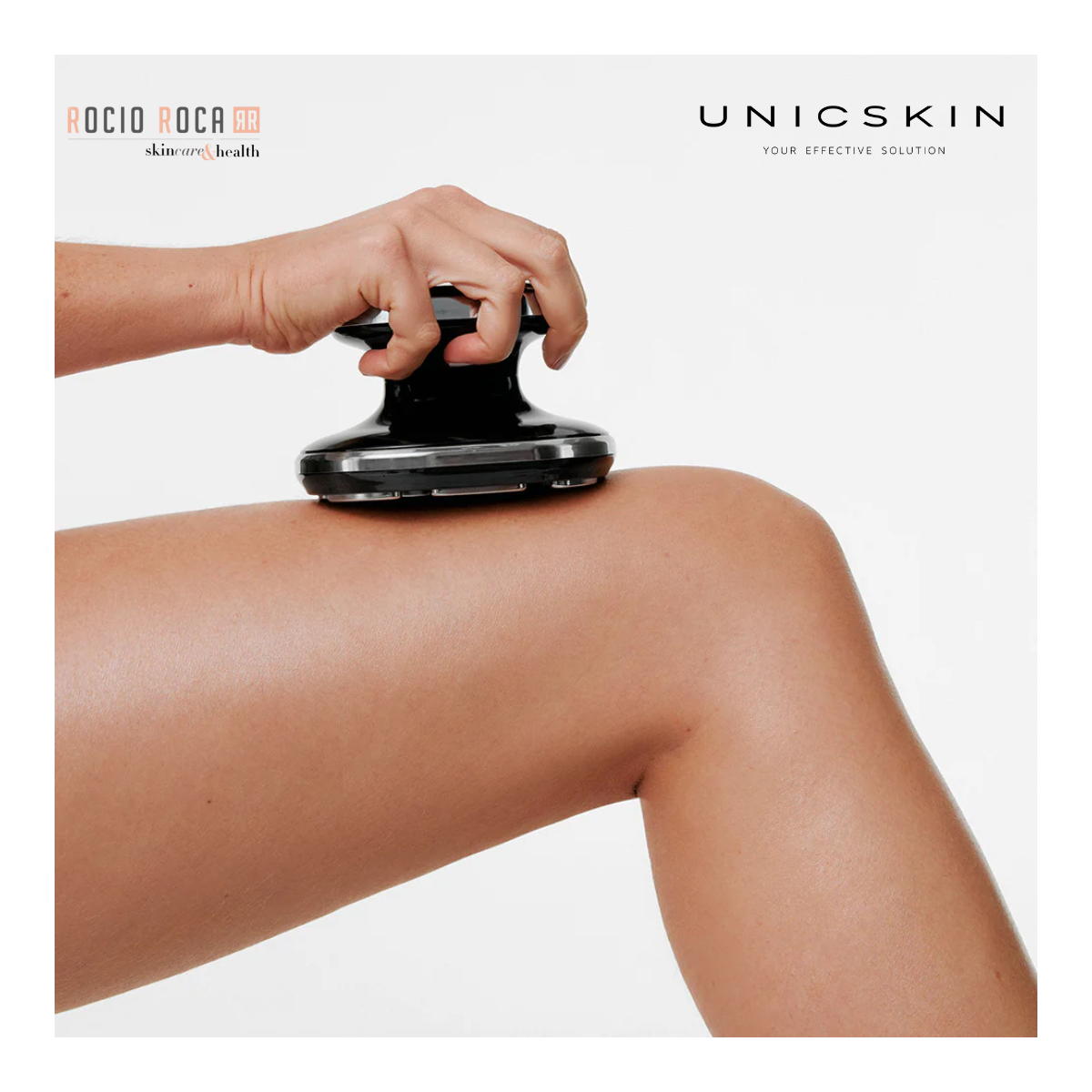 UNICTECH BODY SLIM x4 es el dispositivo de masaje corporal más completo que incorpora 4 tecnologías diferentes (Luz LED, Microcorrientes, Radiofrecuencia y Slim) para trabajar de manera integral tu cuerpo: reducir grasa y celulitis, remodelar, tonificar y reafirmar la piel.