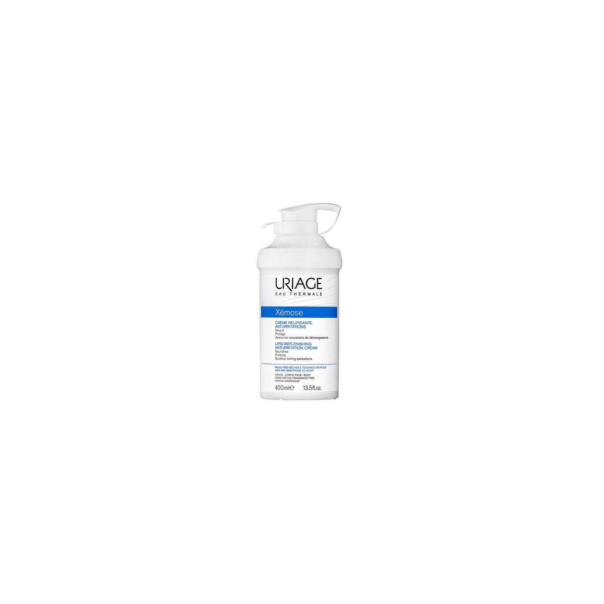 Uriage Xémose Crema Relipidizante Anti-Irritaciones 400ml es una crema calmante para rostro y cuerpo, apta para bebés, niños y adultos con la piel muy seca. Esta crema ofrece hidratación y protección y ayuda a aliviar el picor provocado por la sequedad.