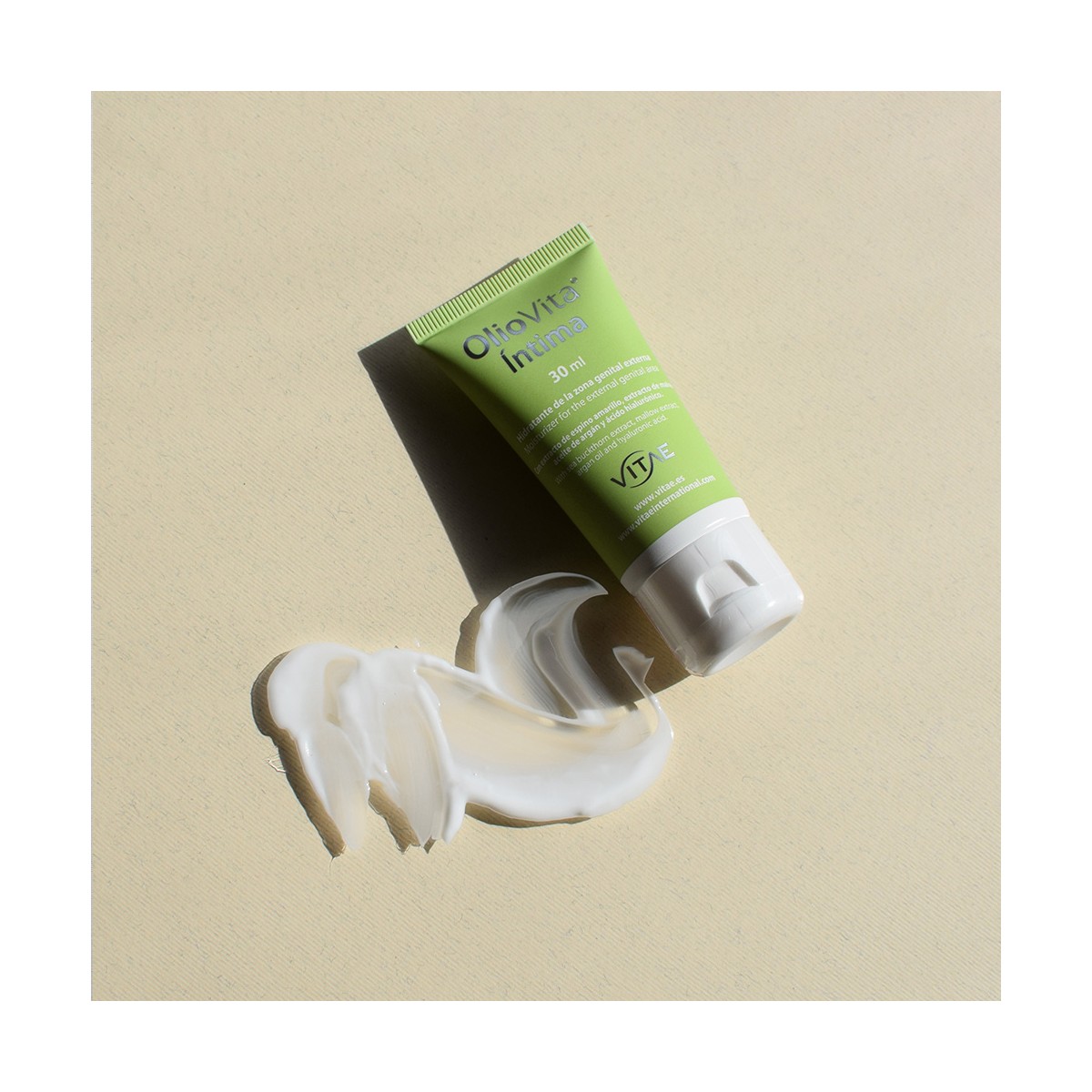 Crema hidratante vaginal de aplicación externa con extracto de aceite de espino amarillo (Hippophae rhamnoides), extracto de malva (Malva sylvestris), aceite de argán (Argania spinosa), aceite de sésamo, ácido hialurónico y péptidos calmantes.